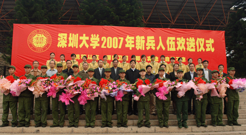 據悉,今年深圳大學征兵工作從10月23日開始宣傳,11月1日全面展開,共有81名學生報名參軍,通過報名、體檢、政審、家訪四個環節的嚴格篩選,最后通過并被批準入伍的學生有17人,分別來自經濟學院、文學院、法學院等11個學院。這些學生有畢業生,還有06、07級新生。他們將分別被前往浙江、湖北等地的中國人民解放軍軍區,其中陸軍14人、海軍1,還有武警部隊戰士2人。