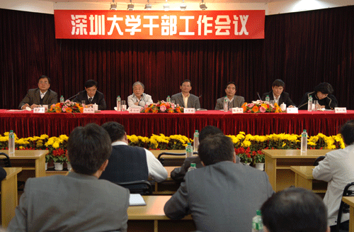 2月20日下午,我校在游泳館二樓會議室召開深圳大學干部工作會議,校領導江潭瑜、章必功、陶士平、阮雙琛、邢鋒、陳思平等和我校各學院、各部處、教輔單位、教授委員會主要負責人、督導室全體同志出席了會議。會議由校黨委書記江潭瑜主持。