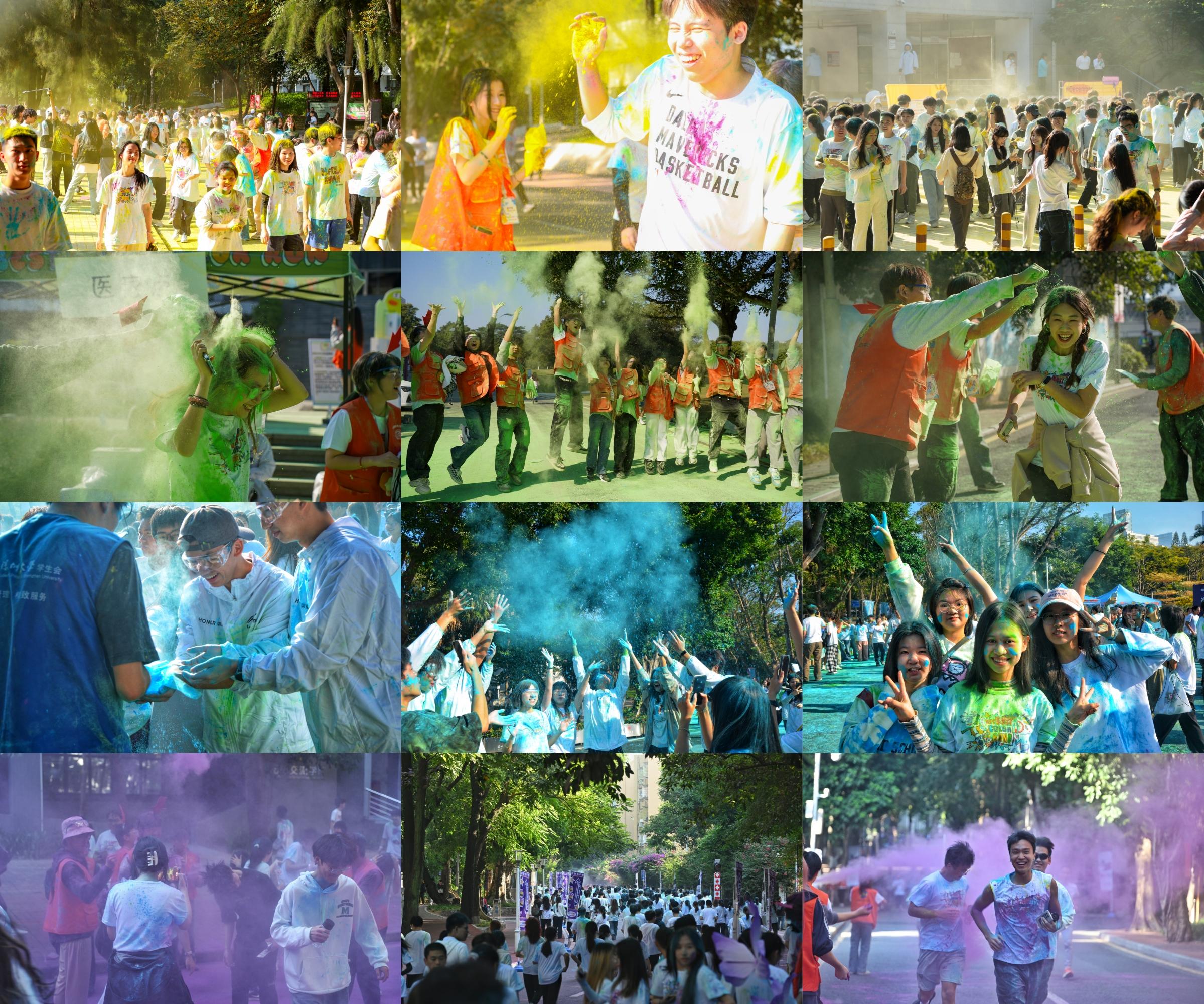 開幕式后,不少同學最期待的“荔枝快跑”環節來了!校領導領跑,參與活動的師生緊隨其后。校領導和部分老師身穿印有卡頭像的T恤衫,與同學們一同奔跑,引得同學們直呼“太可愛了”。深圳大學特色活動“荔枝快跑”(原名“彩色跑”)已舉辦十年,深受師生歡迎。活動以其獨特的色彩魅力與活力四射的氛圍著稱,參與者身著主題T恤衫在校園中穿梭奔跑,享受心靈的釋放與色彩的狂歡。多年來,“荔枝快跑”見證了無數深大學子的青春足跡。十二月的荔園因“荔枝快跑”的斑斕色彩而增添了一道靚麗的風景線。