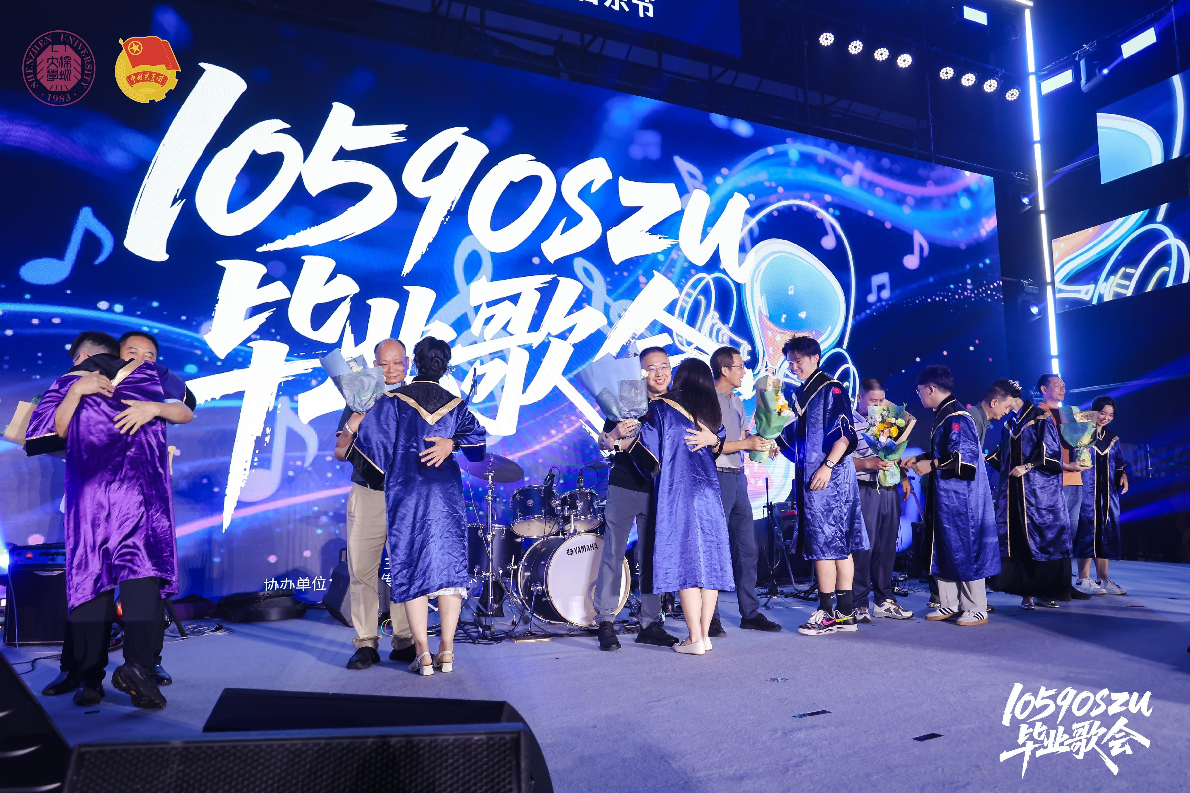 深圳大學校友、畢業歌會執行導演魏詩穎介紹,歌會節目安排與學生在校成長節奏一脈相承,恰逢父親節,更以獻花環節向父愛致敬,為這場畢業盛典注入了更深厚的人文情懷。受邀上臺的畢業生父親也激動地為深大送上祝福:“希望深大逐夢一流!”