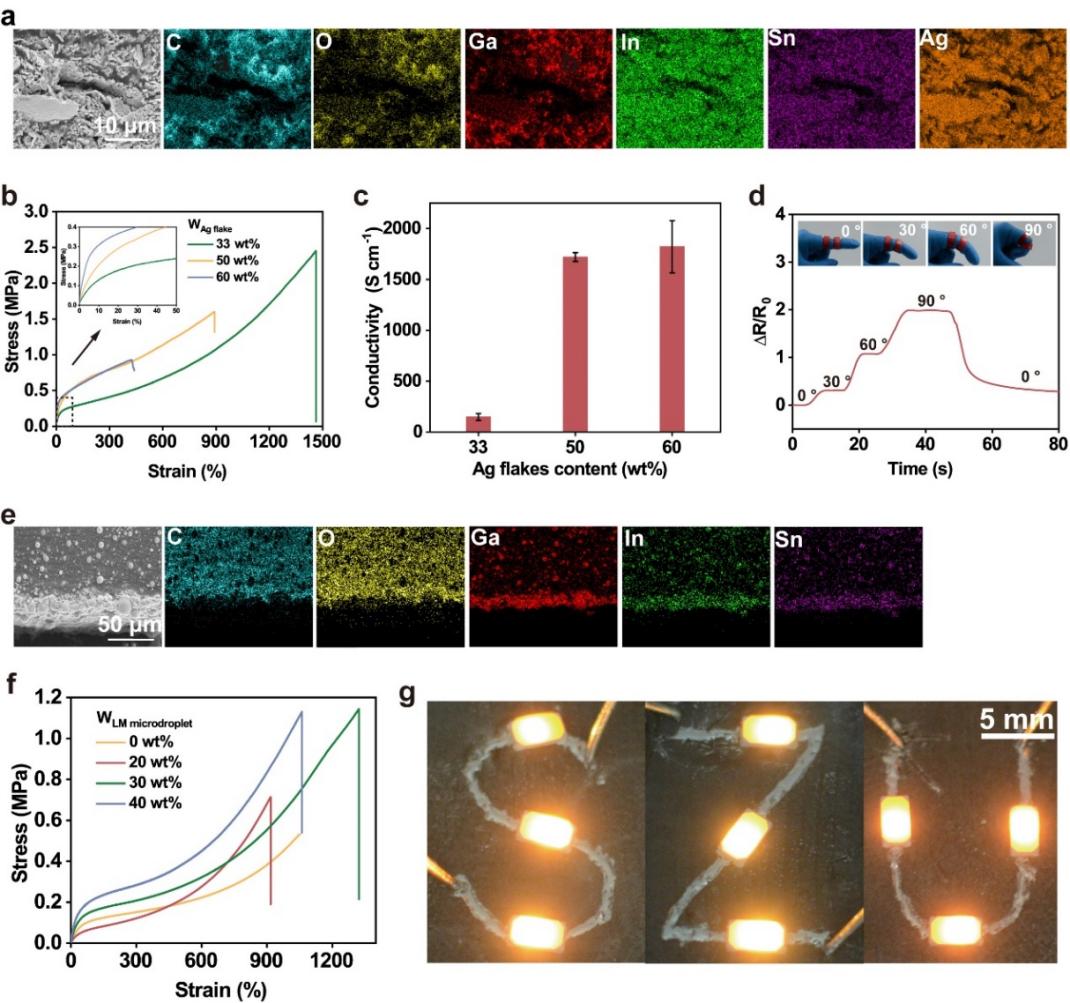 (e-h)以液態(tài)金屬微米液滴為導(dǎo)電填料的復(fù)合材料的制備與應(yīng)用。