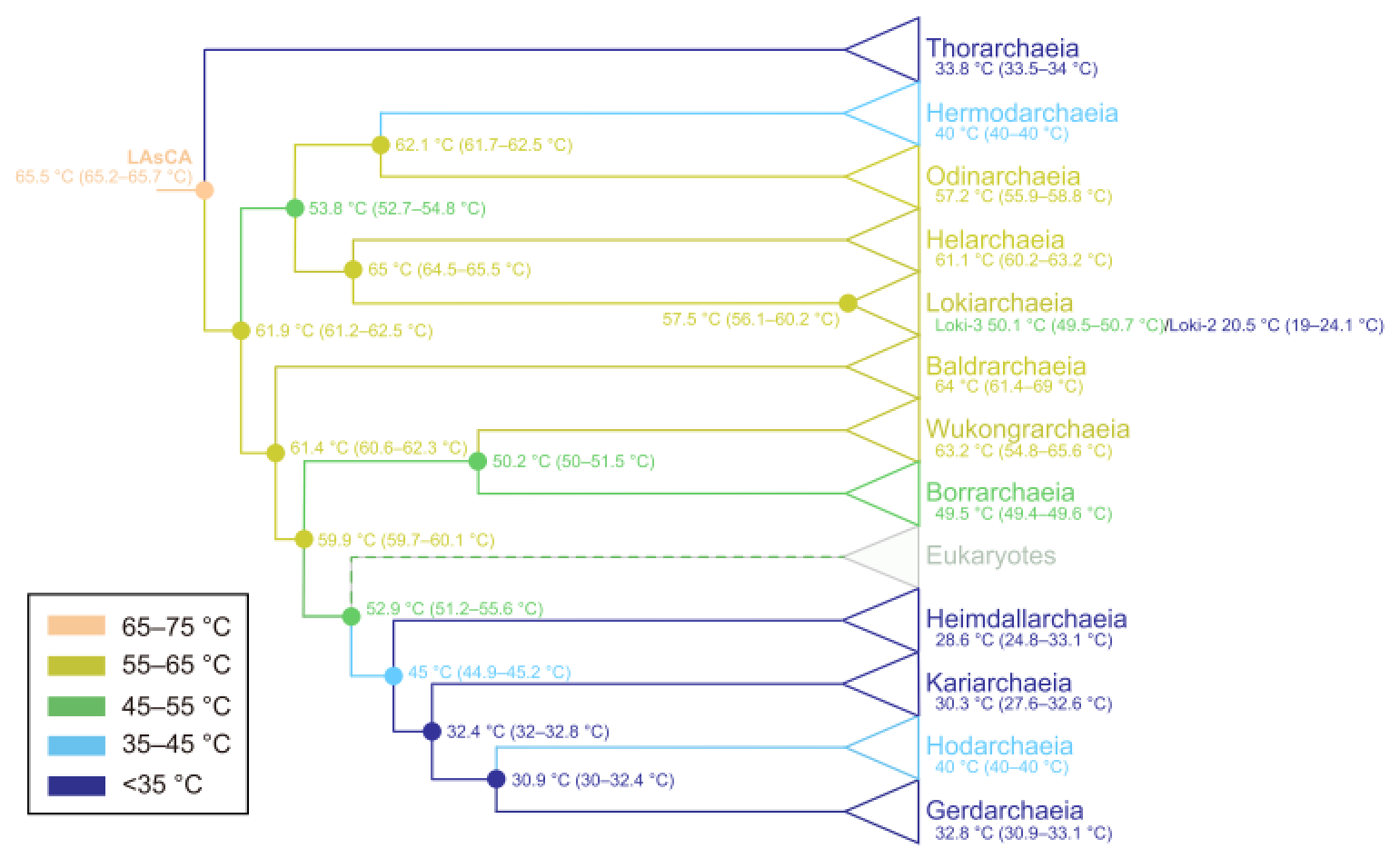 圖1阿斯加德古菌最適生長溫度的演化過程